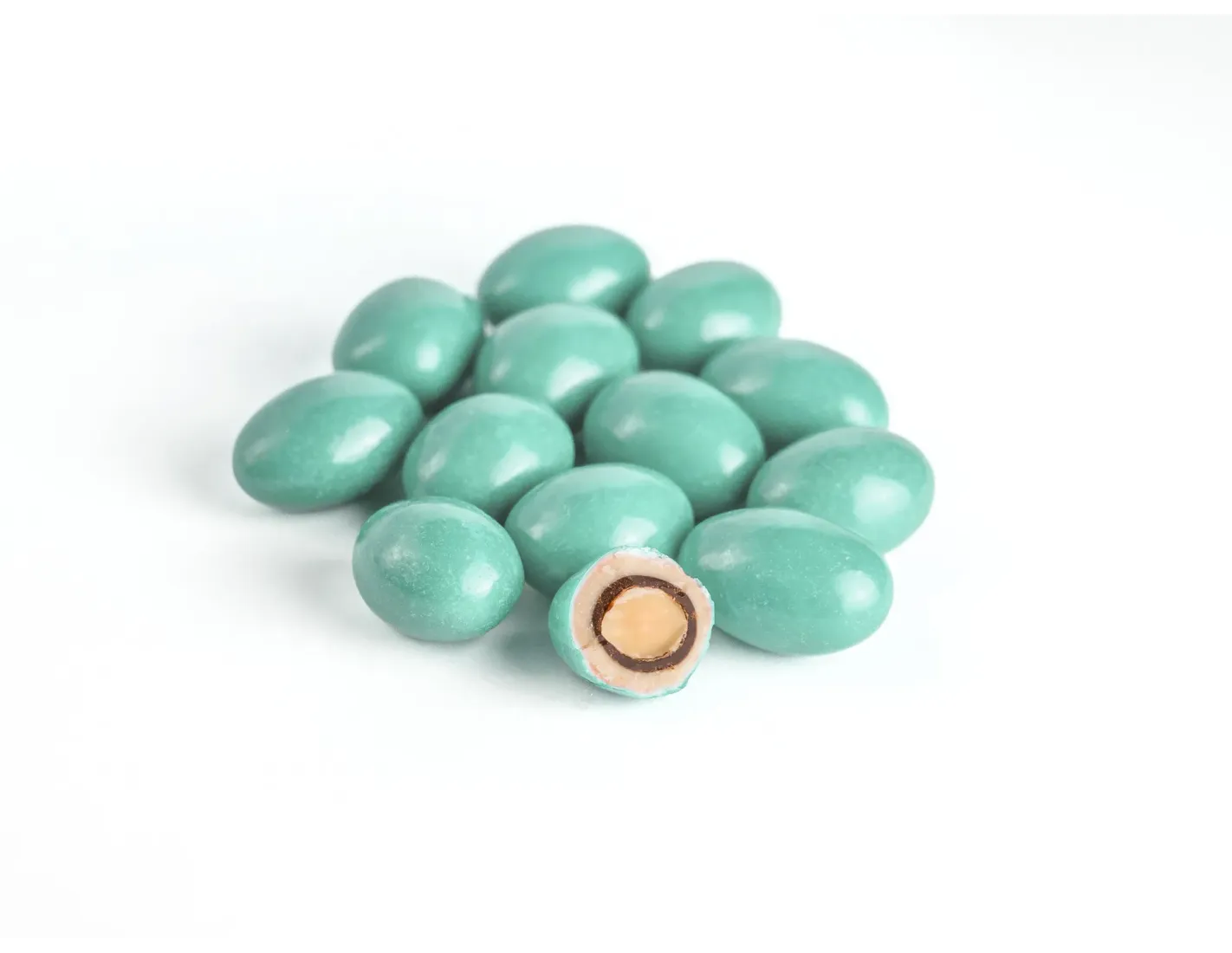 Ingredients: white chocolate (40%) (sugar, whole milk powder, cocoa butter, emulsifier: soy lecithin. Natural vanilla flavor), sugar, dark chocolate (19%) (sugar, cocoa mass, cocoa butter, emulsifier: soy lecithin. Natural vanilla flavor), toasted almonds (18%), rice starch, maltodextrin. Colour: E170. Glazing agents: carnauba wax (E903), beeswax (E901). External colours: if blue (E132, E133), if bordeaux (E129*), if green (E133, E100), if gold (E174, E104*, E122*), if silver (E174).